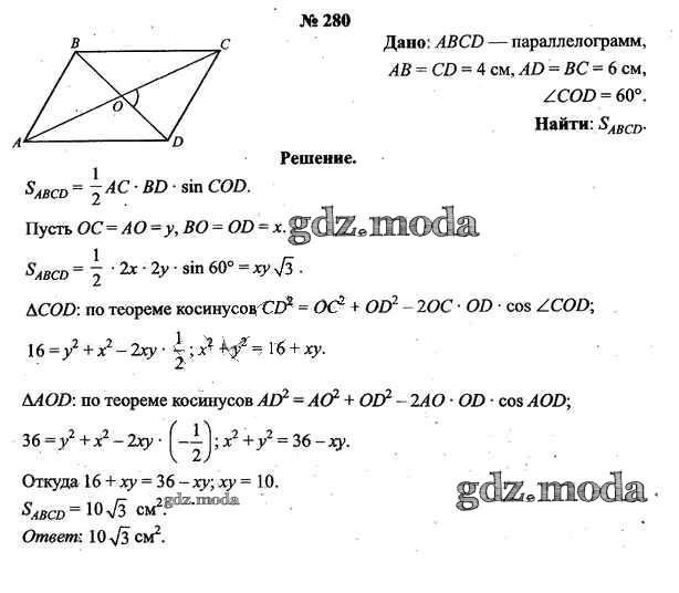 ОТВЕТ на задание № 280 Учебник по Геометрии 9 класс Шлыков
