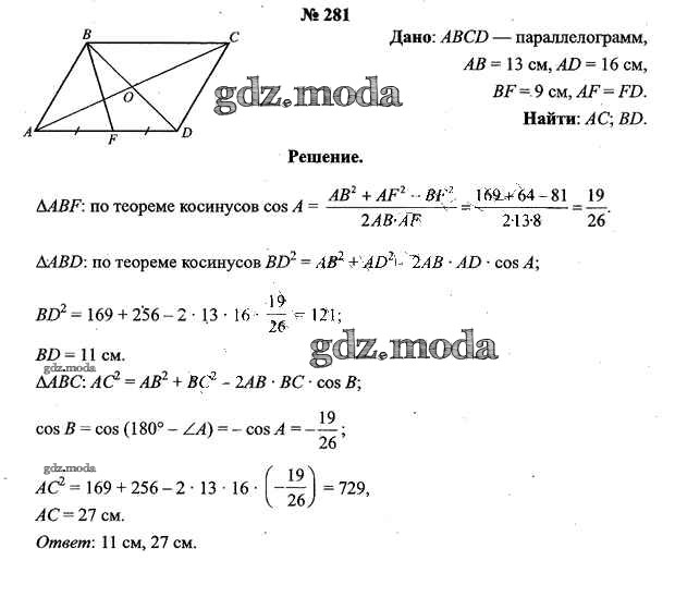 ОТВЕТ на задание № 281 Учебник по Геометрии 9 класс Шлыков