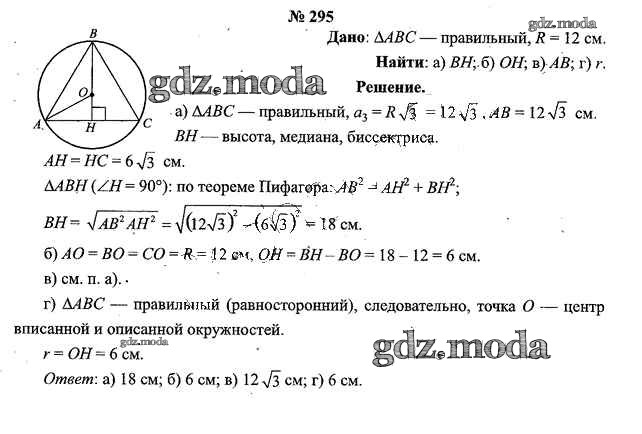 ОТВЕТ на задание № 295 Учебник по Геометрии 9 класс Шлыков