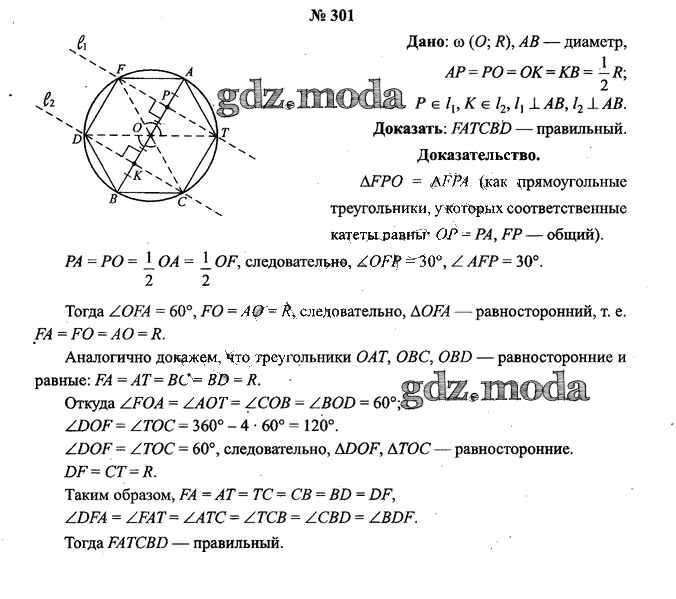 ОТВЕТ на задание № 301 Учебник по Геометрии 9 класс Шлыков