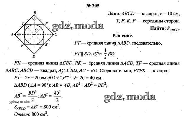 ОТВЕТ на задание № 305 Учебник по Геометрии 9 класс Шлыков
