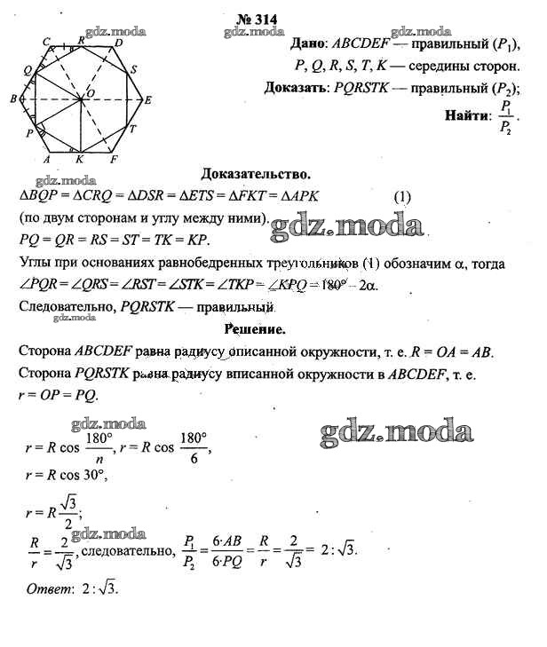 ОТВЕТ на задание № 314 Учебник по Геометрии 9 класс Шлыков