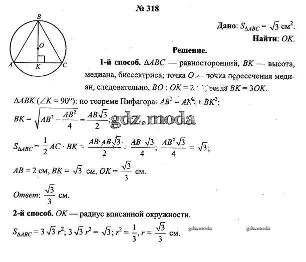 ОТВЕТ на задание № 318 Учебник по Геометрии 9 класс Шлыков
