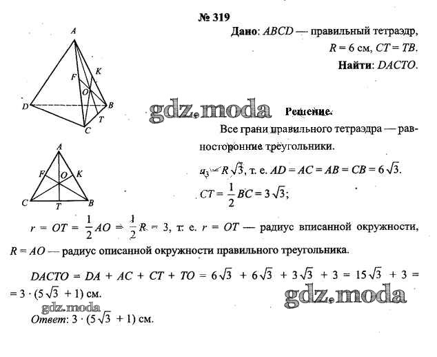 ОТВЕТ на задание № 319 Учебник по Геометрии 9 класс Шлыков