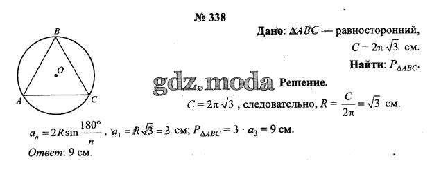 ОТВЕТ на задание № 338 Учебник по Геометрии 9 класс Шлыков