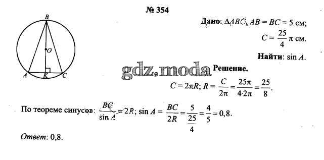 ОТВЕТ на задание № 354 Учебник по Геометрии 9 класс Шлыков