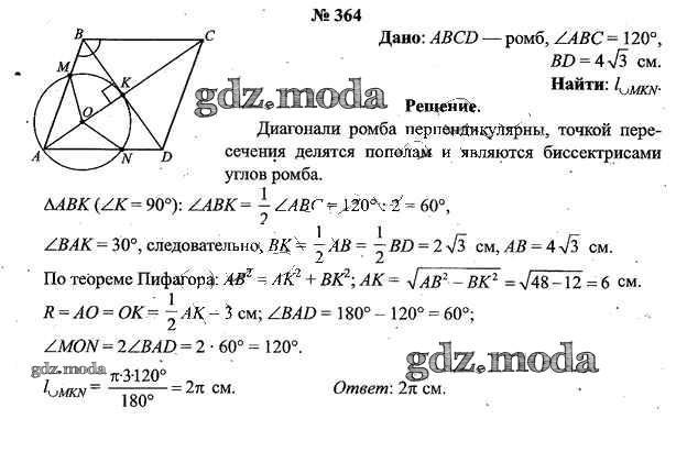 ОТВЕТ на задание № 364 Учебник по Геометрии 9 класс Шлыков