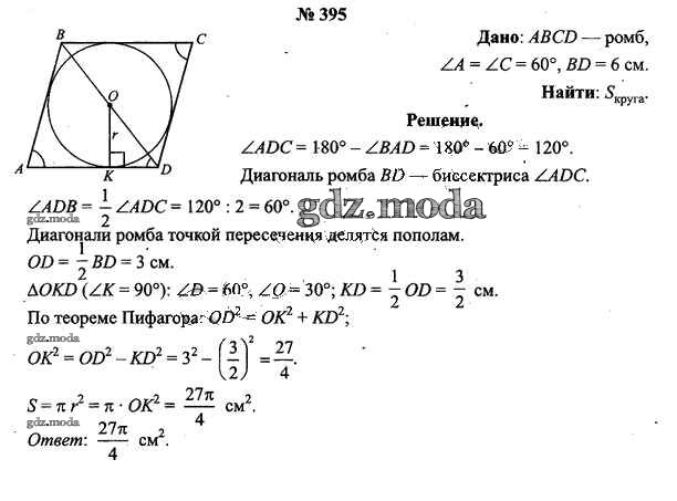 ОТВЕТ на задание № 395 Учебник по Геометрии 9 класс Шлыков