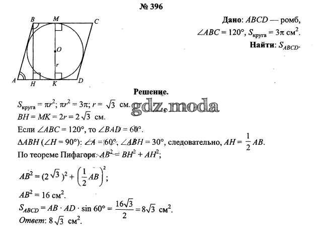 ОТВЕТ на задание № 396 Учебник по Геометрии 9 класс Шлыков