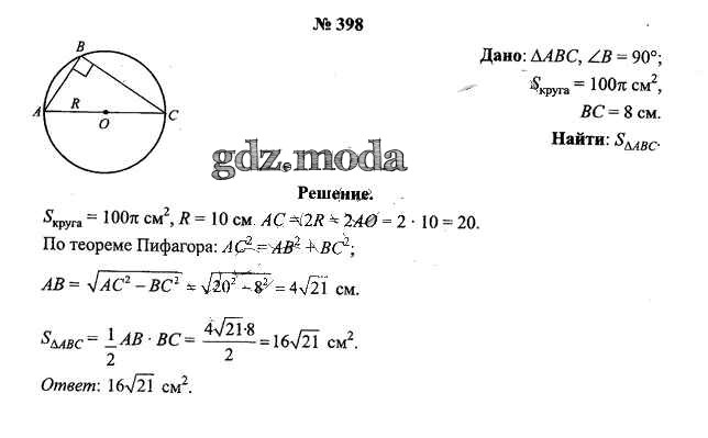 ОТВЕТ на задание № 398 Учебник по Геометрии 9 класс Шлыков