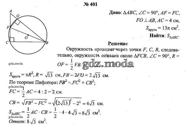 ОТВЕТ на задание № 401 Учебник по Геометрии 9 класс Шлыков