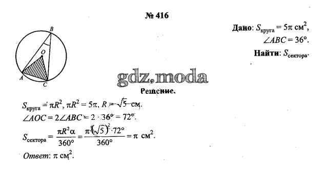 ОТВЕТ на задание № 416 Учебник по Геометрии 9 класс Шлыков