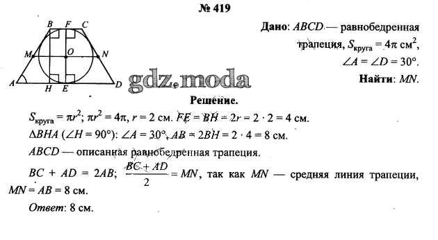 ОТВЕТ на задание № 419 Учебник по Геометрии 9 класс Шлыков