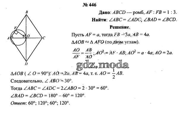 ОТВЕТ на задание № 446 Учебник по Геометрии 9 класс Шлыков