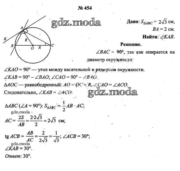 ОТВЕТ на задание № 454 Учебник по Геометрии 9 класс Шлыков