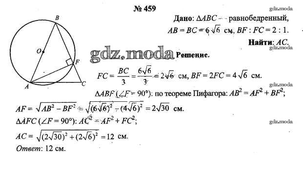 ОТВЕТ на задание № 459 Учебник по Геометрии 9 класс Шлыков