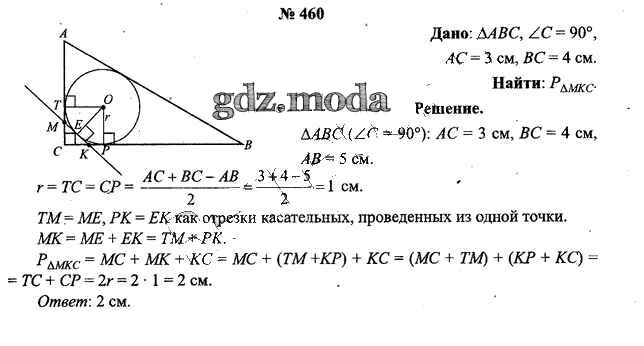ОТВЕТ на задание № 460 Учебник по Геометрии 9 класс Шлыков