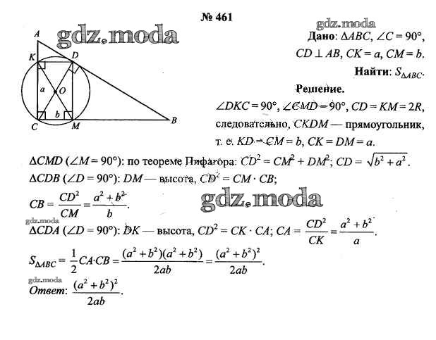 ОТВЕТ на задание № 461 Учебник по Геометрии 9 класс Шлыков