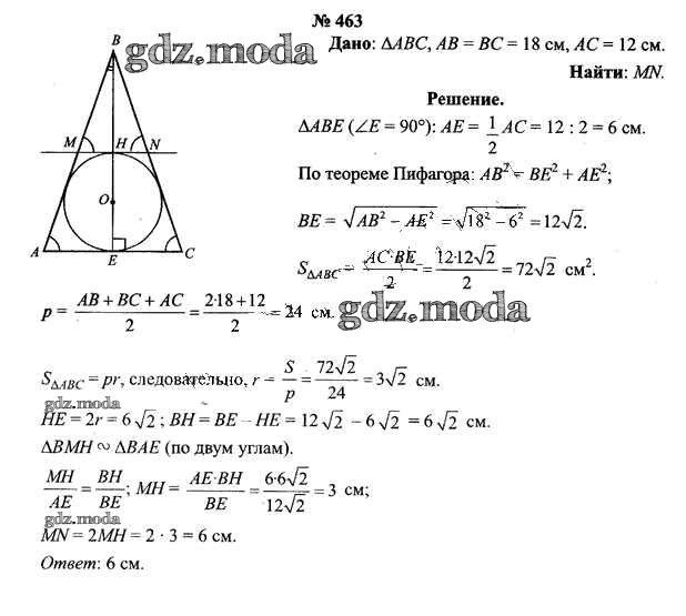 ОТВЕТ на задание № 463 Учебник по Геометрии 9 класс Шлыков