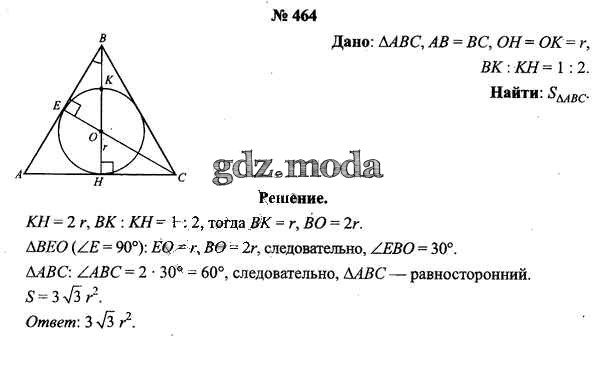 ОТВЕТ на задание № 464 Учебник по Геометрии 9 класс Шлыков