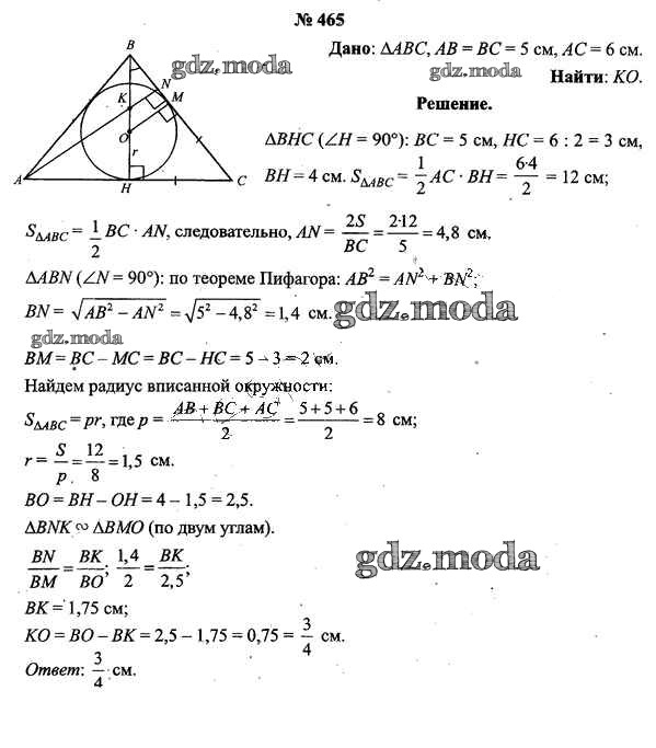 ОТВЕТ на задание № 465 Учебник по Геометрии 9 класс Шлыков