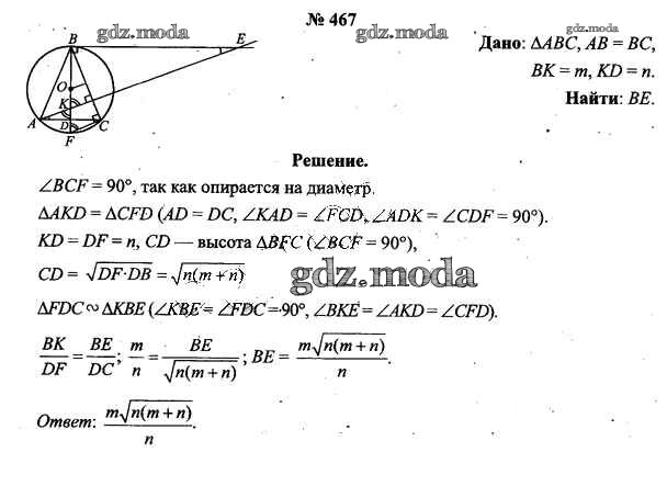 ОТВЕТ на задание № 467 Учебник по Геометрии 9 класс Шлыков