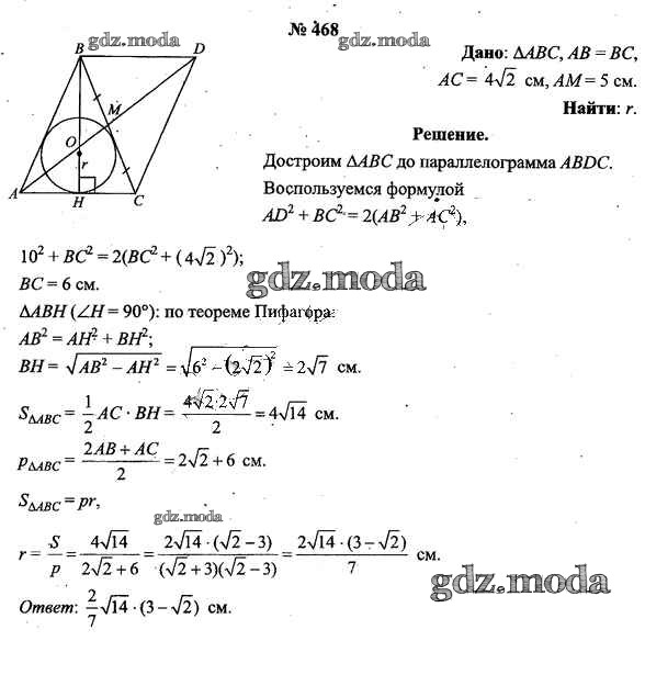 ОТВЕТ на задание № 468 Учебник по Геометрии 9 класс Шлыков