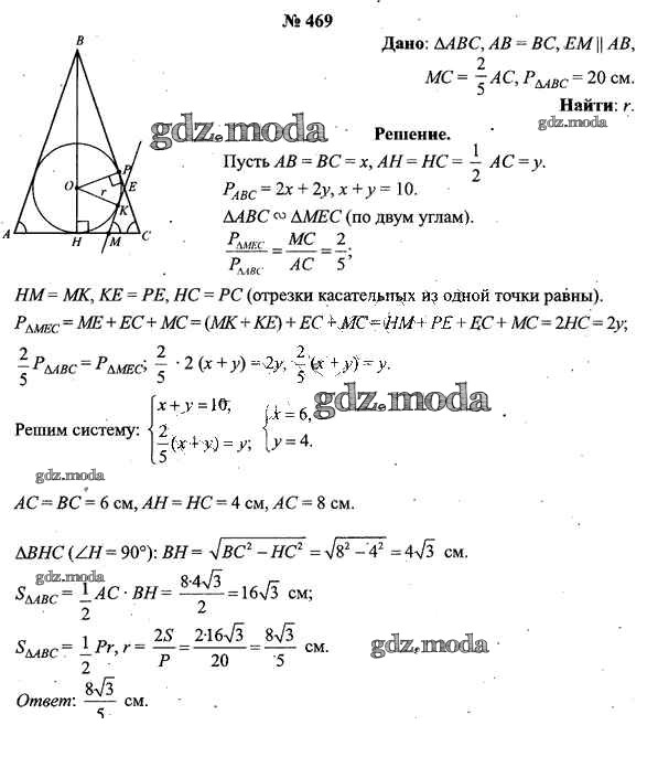 ОТВЕТ на задание № 469 Учебник по Геометрии 9 класс Шлыков