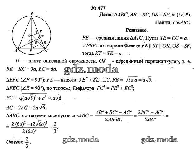 ОТВЕТ на задание № 477 Учебник по Геометрии 9 класс Шлыков
