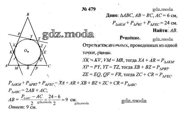 ОТВЕТ на задание № 479 Учебник по Геометрии 9 класс Шлыков