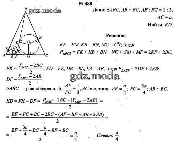 ОТВЕТ на задание № 480 Учебник по Геометрии 9 класс Шлыков