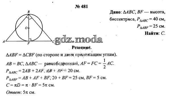 ОТВЕТ на задание № 481 Учебник по Геометрии 9 класс Шлыков
