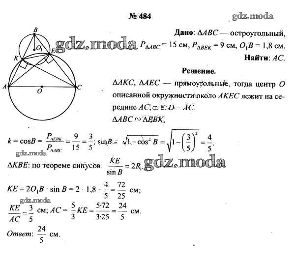 ОТВЕТ на задание № 484 Учебник по Геометрии 9 класс Шлыков