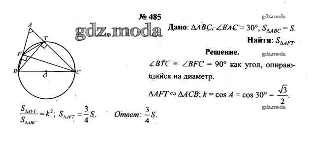 ОТВЕТ на задание № 485 Учебник по Геометрии 9 класс Шлыков