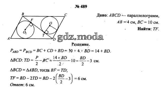 ОТВЕТ на задание № 489 Учебник по Геометрии 9 класс Шлыков