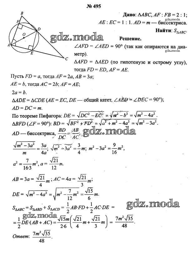 ОТВЕТ на задание № 495 Учебник по Геометрии 9 класс Шлыков