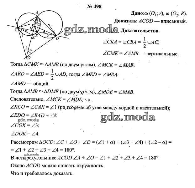ОТВЕТ на задание № 498 Учебник по Геометрии 9 класс Шлыков