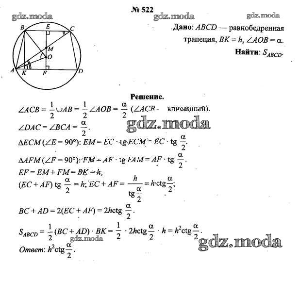 ОТВЕТ на задание № 522 Учебник по Геометрии 9 класс Шлыков
