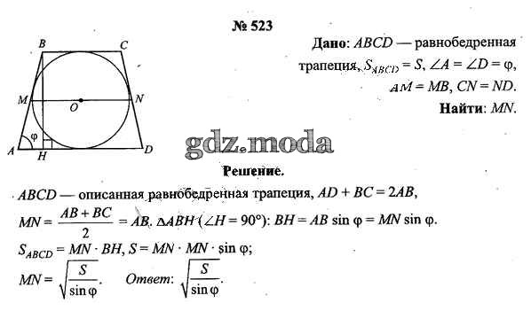 ОТВЕТ на задание № 523 Учебник по Геометрии 9 класс Шлыков