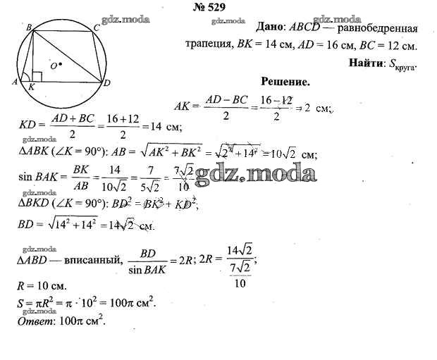 ОТВЕТ на задание № 529 Учебник по Геометрии 9 класс Шлыков