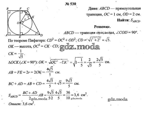 ОТВЕТ на задание № 530 Учебник по Геометрии 9 класс Шлыков