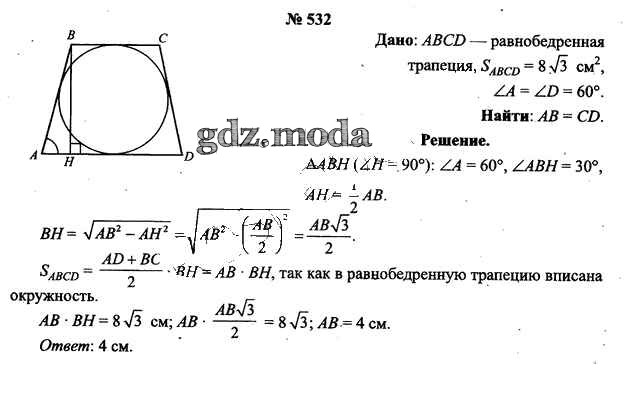 ОТВЕТ на задание № 532 Учебник по Геометрии 9 класс Шлыков