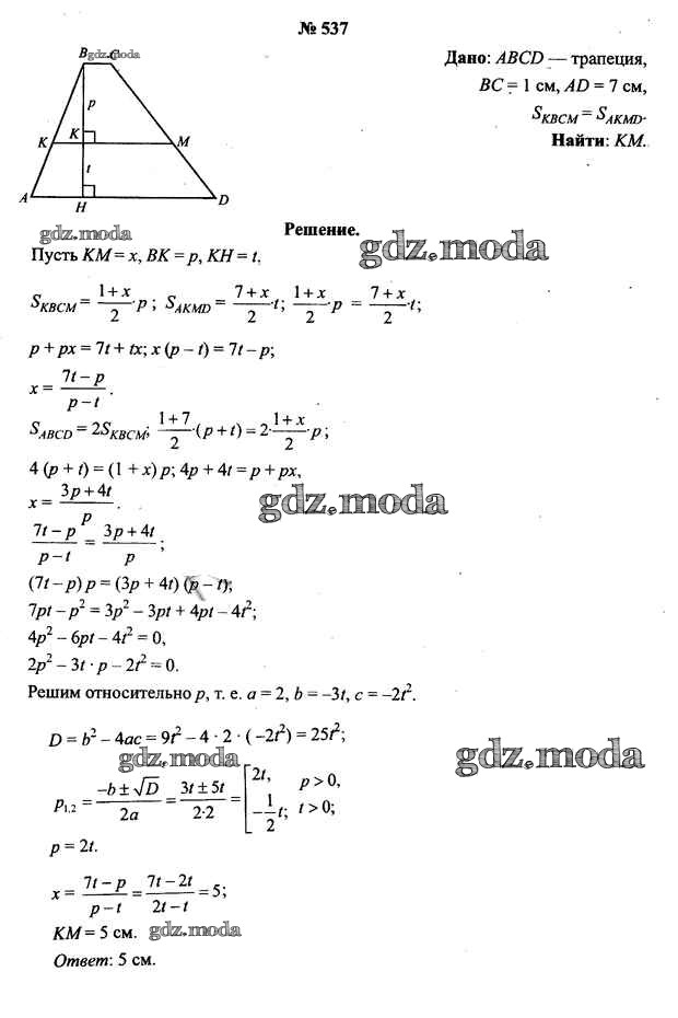 ОТВЕТ на задание № 537 Учебник по Геометрии 9 класс Шлыков
