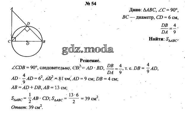 ОТВЕТ на задание № 54 Учебник по Геометрии 9 класс Шлыков
