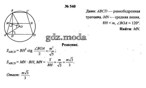 ОТВЕТ на задание № 540 Учебник по Геометрии 9 класс Шлыков