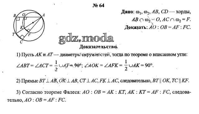 ОТВЕТ на задание № 64 Учебник по Геометрии 9 класс Шлыков