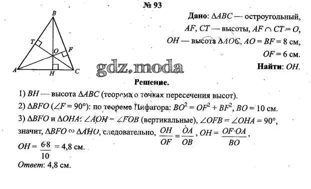 ОТВЕТ на задание № 93 Учебник по Геометрии 9 класс Шлыков