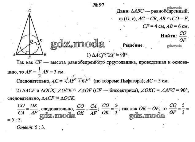 ОТВЕТ на задание № 97 Учебник по Геометрии 9 класс Шлыков