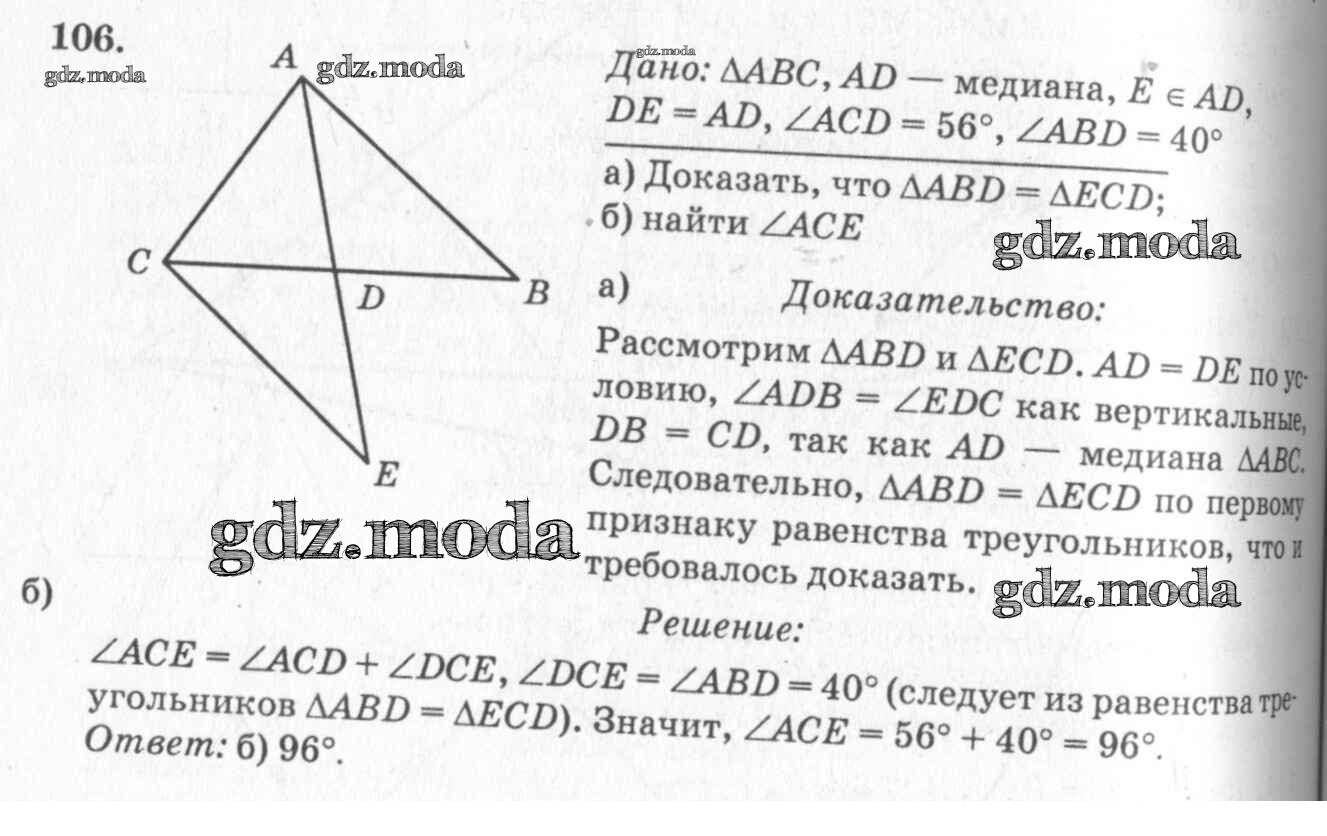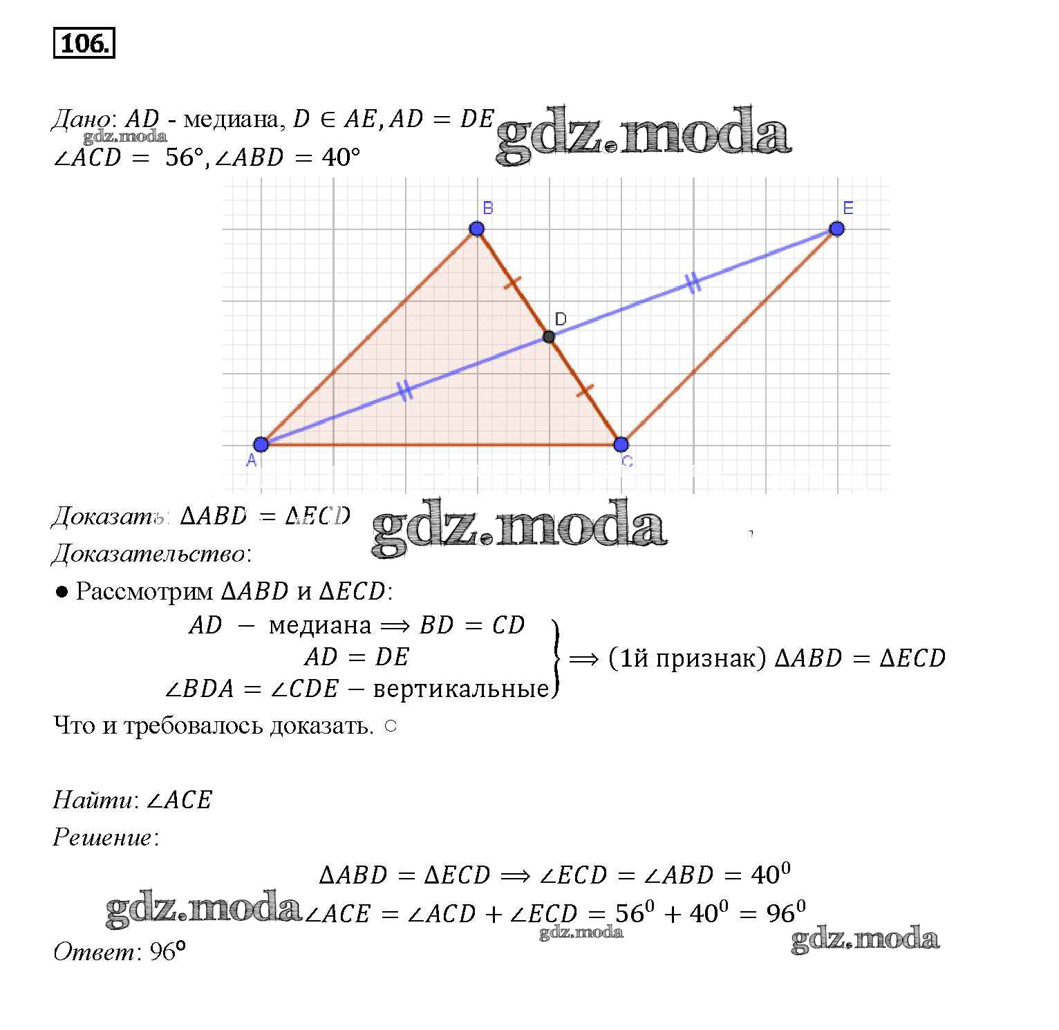 ОТВЕТ на задание № 106 Учебник по Геометрии 7-9 класс Атанасян