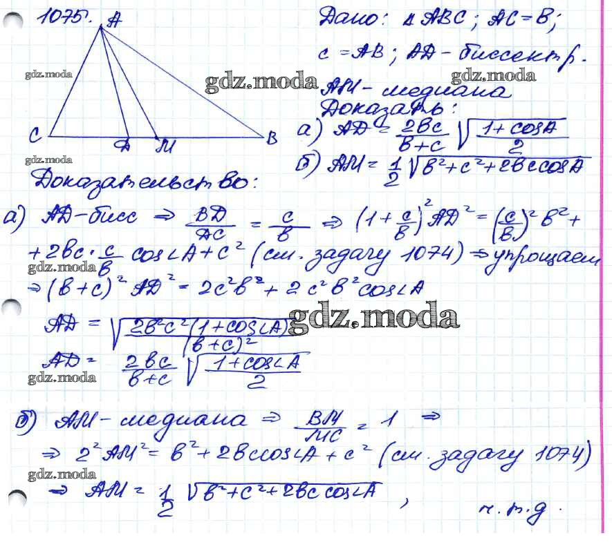 ОТВЕТ на задание № 1075 Учебник по Геометрии 7-9 класс Атанасян